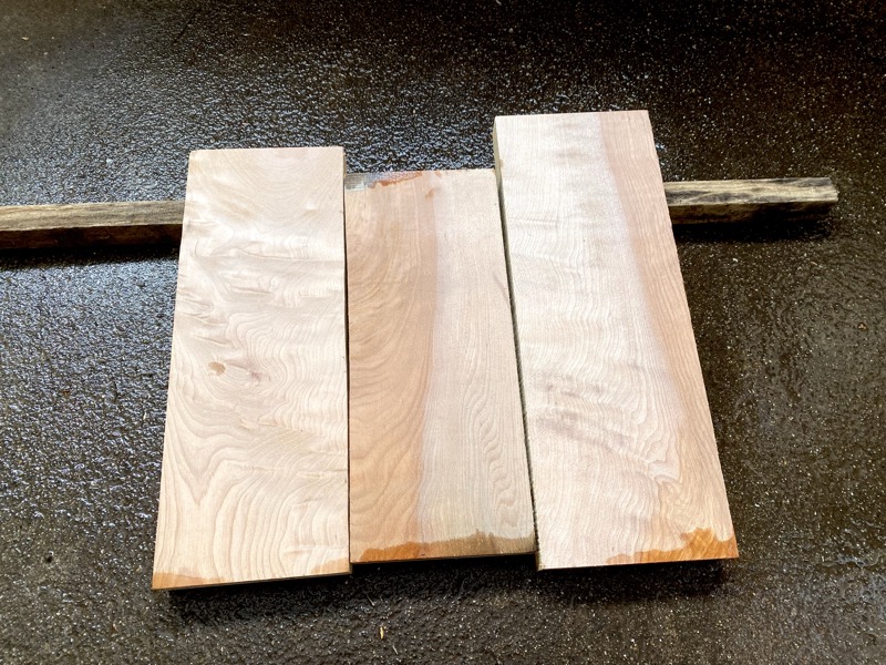 | カバ(樺) 杢 20230328kab 乾燥材荒材 約(3mm)×(80)×(900)9set 約2Kg ¥2500 | 写真 1 2 3 4 5 6 虫穴 変色 節 ヒビ 薄いところ有り東京迄の運賃 税別¥1450 112 |