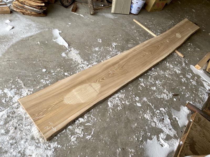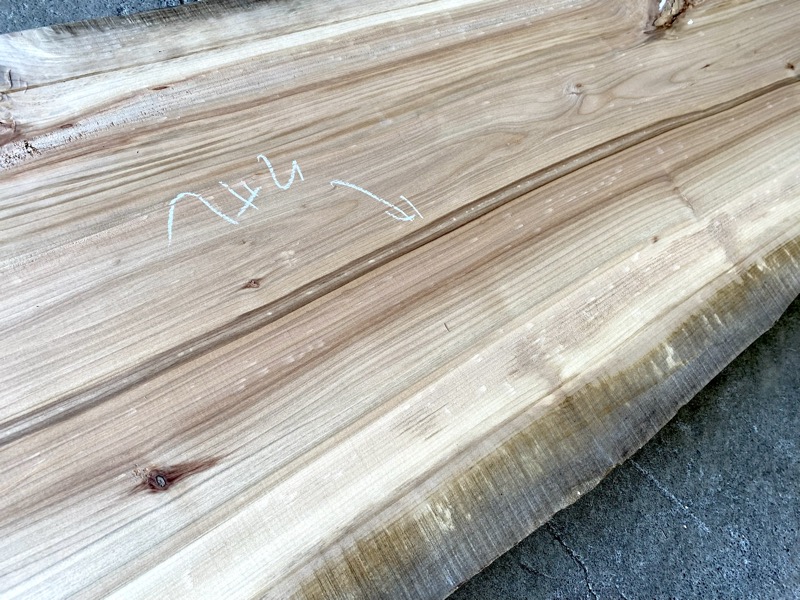 | ニレ(楡) カウンタ-天板 2314nir6 乾燥材荒材 約(56mm)×(570〜670)×(2500)¥34000 | 写真 1 2 3 4 5 6 虫穴 変色 腐れ ヒビ 有り 81 |