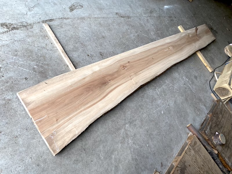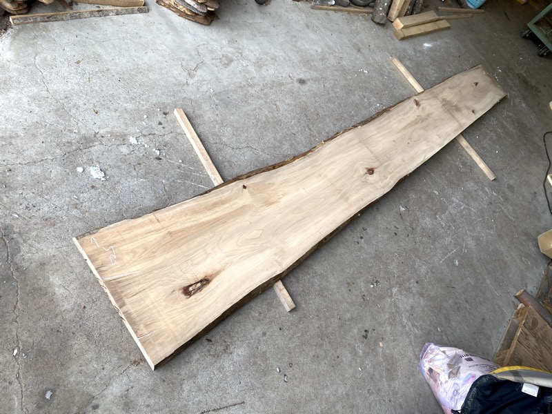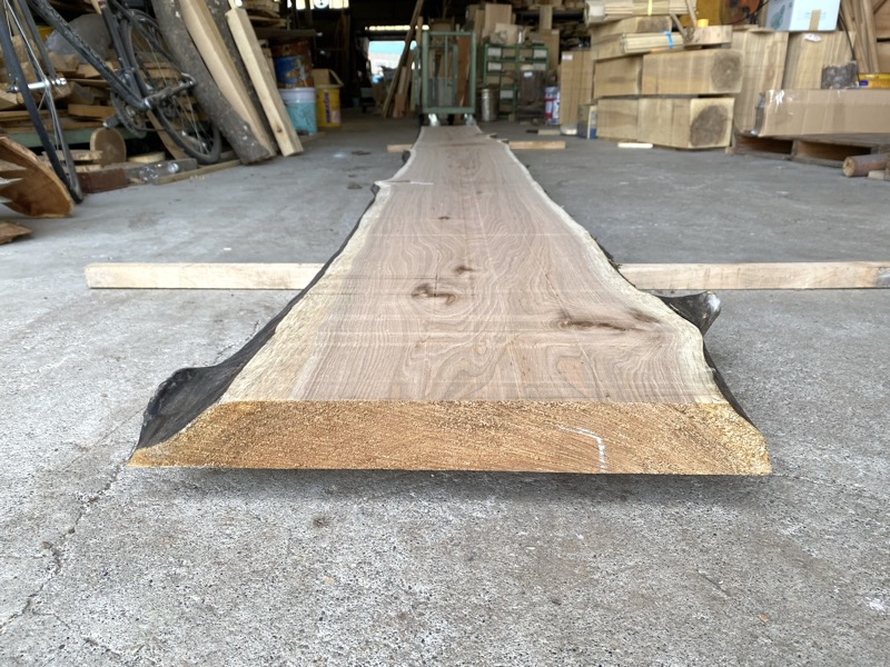 | クルミ(胡桃) カウンタ-天板 20260314kul 乾燥材荒材 約(52mm)×(340〜400)×(4200)約50Kg ¥128000 | 写真 1 2 3 4 5 6 虫穴 変色 節 ヒビ 有りこのままの長さですと工場渡しとなります。 81 |
