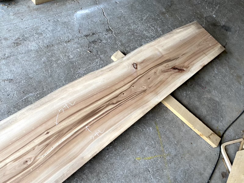 | ニレ(楡) カウンタ-天板 20260214nir 乾燥材荒材 約(34mm)×(370〜420)×(4100)約35Kg ¥69800 | 写真 1 2 3 4 5 6 虫穴 変色 節 ヒビ 有りこのままの長さですと工場渡しとなります。 81 |