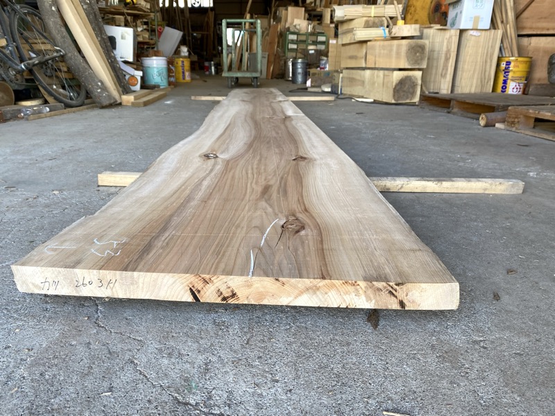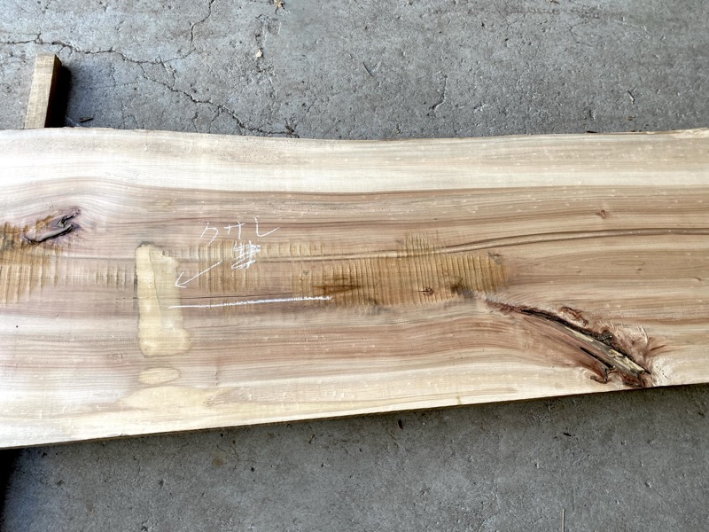 | カツラ(桂) カウンタ-天板 20161112katC 乾燥材荒材 約(58mm)×(450〜620)×(2600)約55Kg ¥29800 | 写真 1 2 3 4 5 6 変色 のこ目 節 ヒビ 有り 81 |