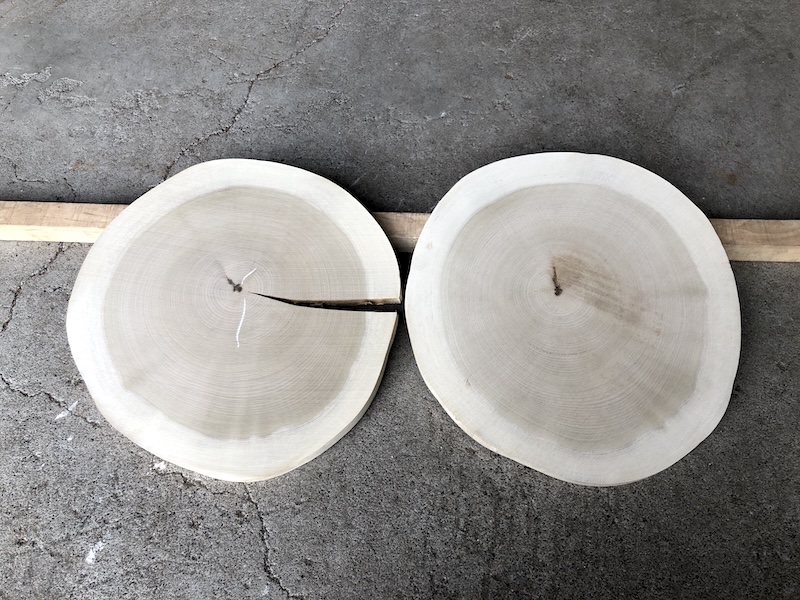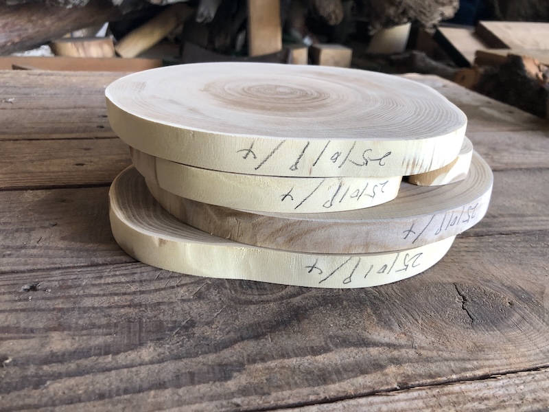 | ホオ(朴) 輪切 20250514wag 乾燥材荒材 約(17mm厚)×(320〜mmφ)×2set 約2Kg ¥2980 | 写真 1 2 3 4 5 6 虫穴 変色 節 ヒビ 有り東京迄の運賃 税別¥1650 87 |