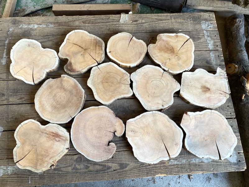 | アオダモ 輪切 20230405wag 乾燥材荒材 約(15mm厚)×(150〜mmφ)×5set 約1.5Kg ¥1500 | 写真 1 2 3 4 5 6 虫穴 変色 節 ヒビ 有り東京迄の運賃 税別¥1280 77 |