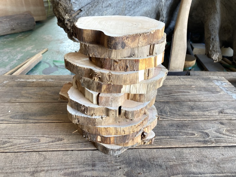| 輪切 20251229wag 約(12〜30mm厚)×(70〜180mmφ)×約8Kg ¥1500 | 写真 1 2 3 4 5 6 北海道の広葉樹です。虫穴 変色 節 ヒビ 有り東京迄の運賃 税別¥1650 77 |