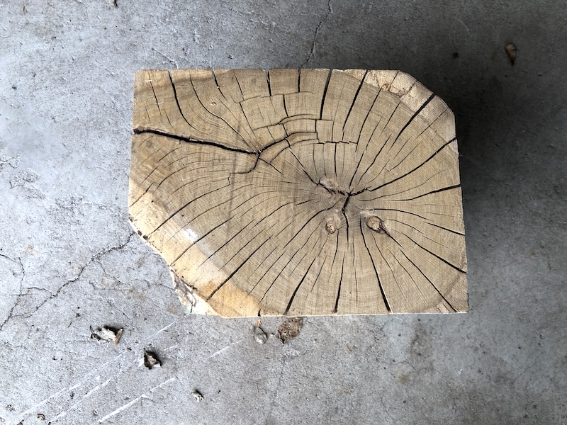 未乾燥の芯有り材です。乾燥が進みヒビが進行します