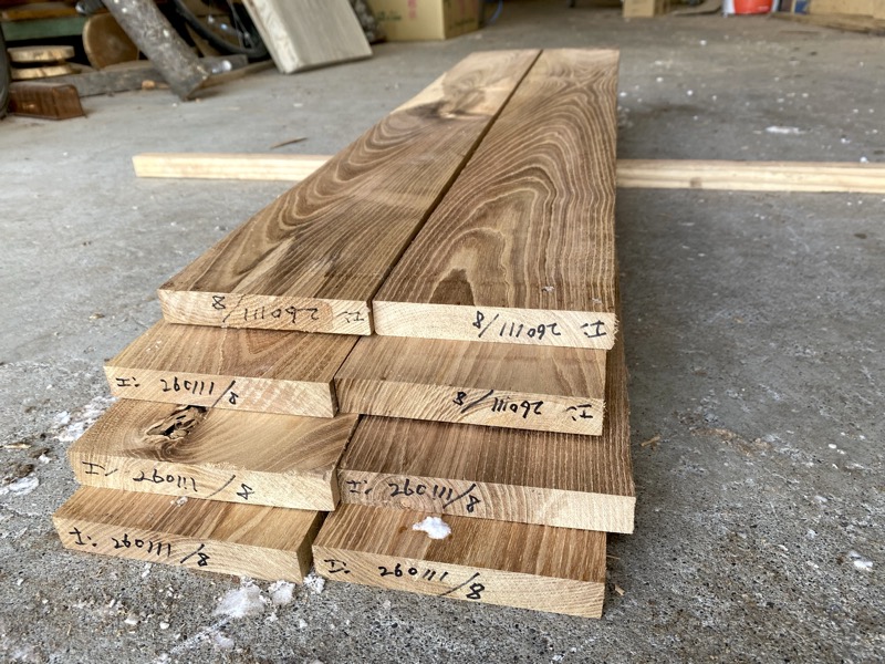 | エンジュ(槐) 板 20260111enj 乾燥材荒材 約(18mm)×(110)×(900)8set 約12Kg ¥4660 | 写真 1 2 3 4 5 6 虫穴 変色 腐れ 節 ヒビ 有り東京迄の運賃 税別¥2100 88 |
