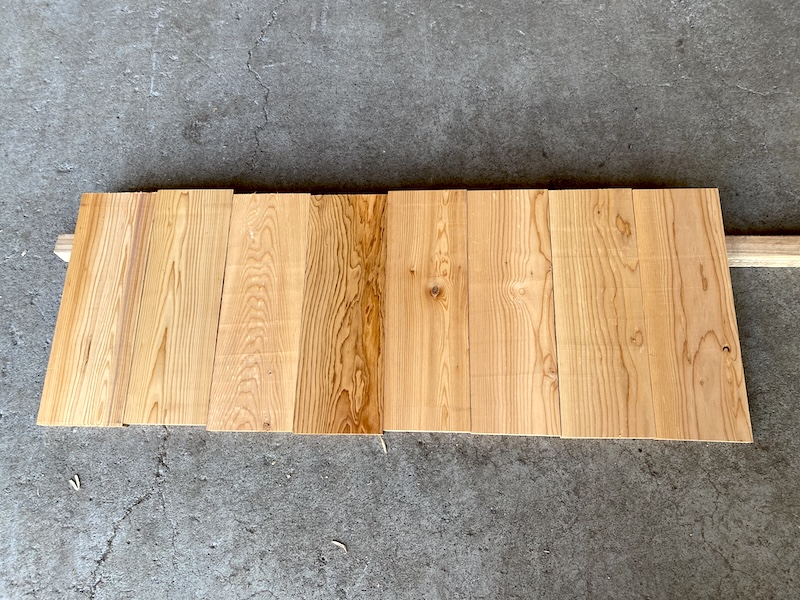 | イチイ(一位) 板 20251127iti 乾燥材荒材 約(12mm)×(95)×(280)8set 約2Kg ¥2500 | 写真 1 2 3 4 5 6 虫穴 変色 節 ヒビ 有り東京迄の運賃 税別¥1450 64 |
