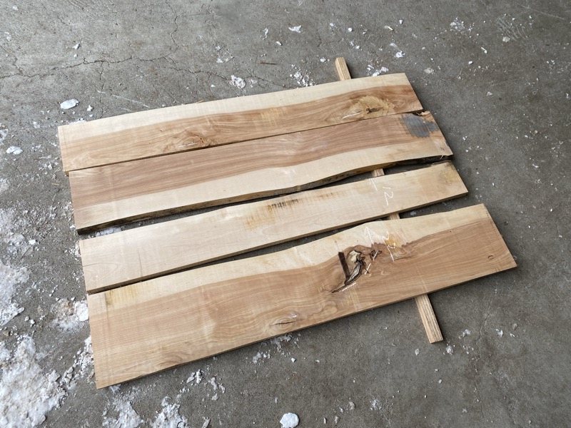 | カバ(樺) 板 20260116kab 乾燥材荒材 約(22mm)×(120〜220)×(1100)4set 約12Kg ¥3980 | 写真 1 2 3 4 5 6 虫穴 変色 節 ヒビ 有り東京迄の運賃 税別¥2100 124 |