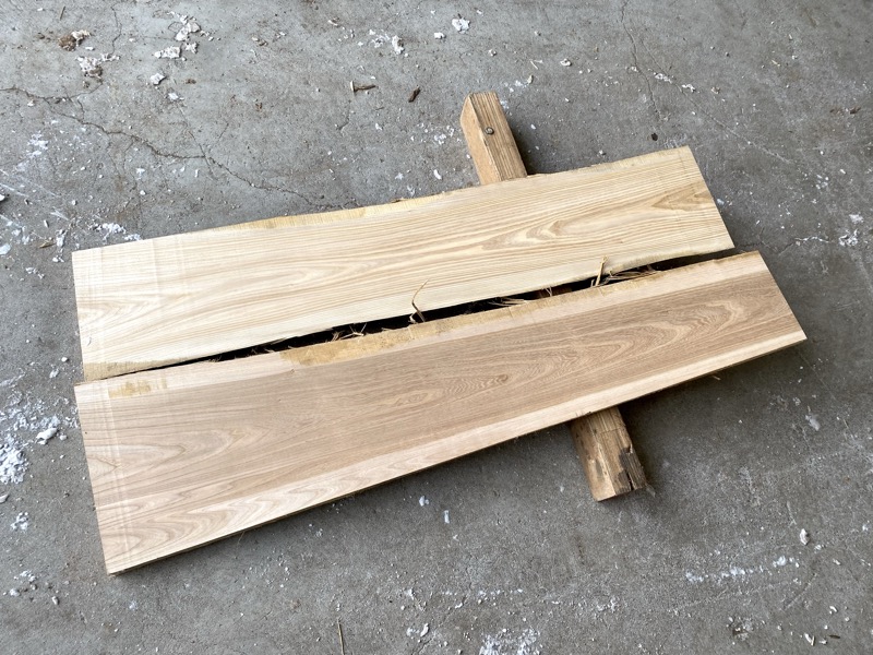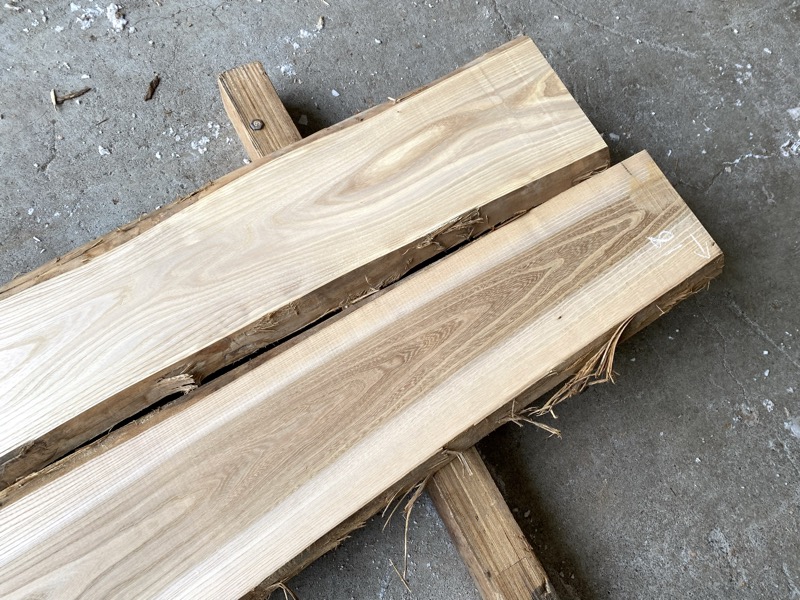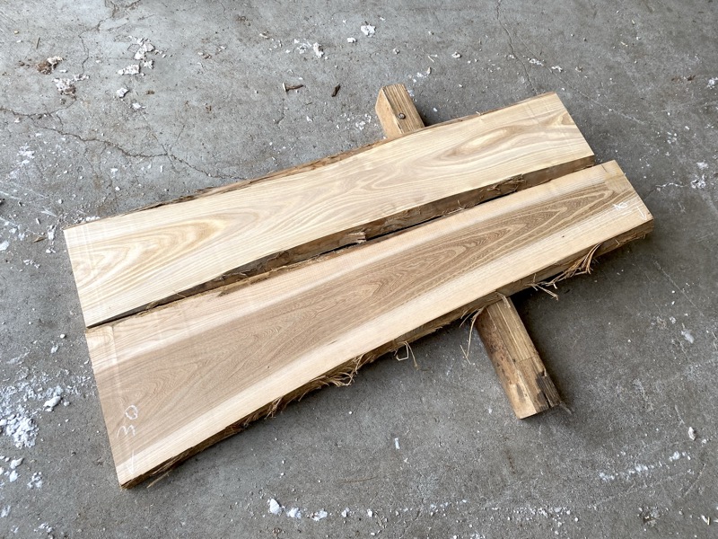 | ニレ(楡) 板 20230130nir 乾燥材荒材 約(26mm)×(200〜)×(880)2set 約6Kg ¥3500 | 写真 1 2 3 4 5 6 虫穴 変色 節 ヒビ 有り東京迄の運賃 税別¥1830 86 |